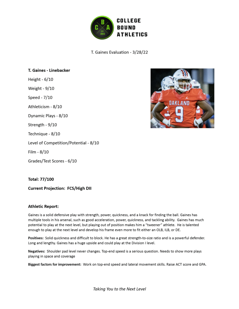 2. Recruitment Probability: The CBA Recruitability Score offers athletes a transparent and honest assessment of their likelihood of being recruited, considering their abilities, goals, and the competitive nature of college football.